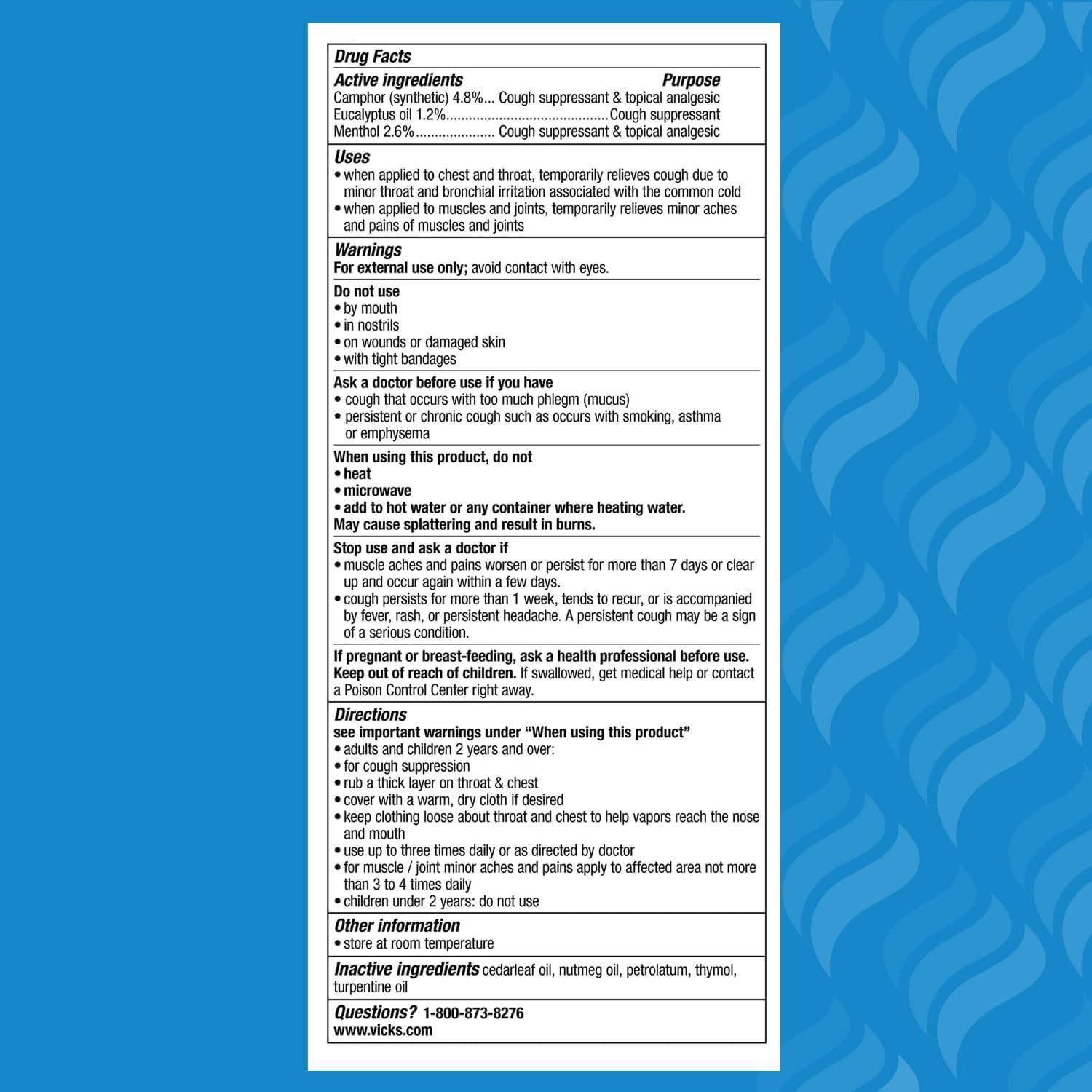 Apply on chest, throat and back for relief from 6 cold symptoms: